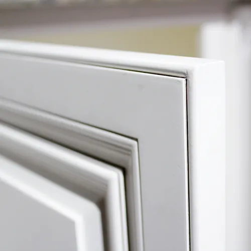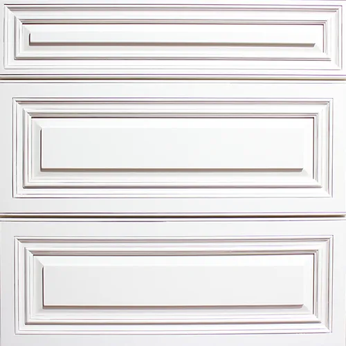 3/4″ solid natural wood door with MDF center panel 1/2″ cabinet grade plywood shelves 1/2″ cabinet grade plywood box 1/2″ cabinet grade plywood drawers Beaded panel door Dovetail joint drawers Soft-closing drawers Interior same finished as the door color